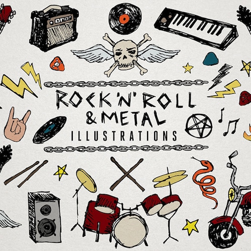 Rock 'n' Roll clipart & Heavy Metal Music Clip Art, Sketchy Doodles, guitar clipart, drums, motorcycle, skulls, keyboard, records, flames
